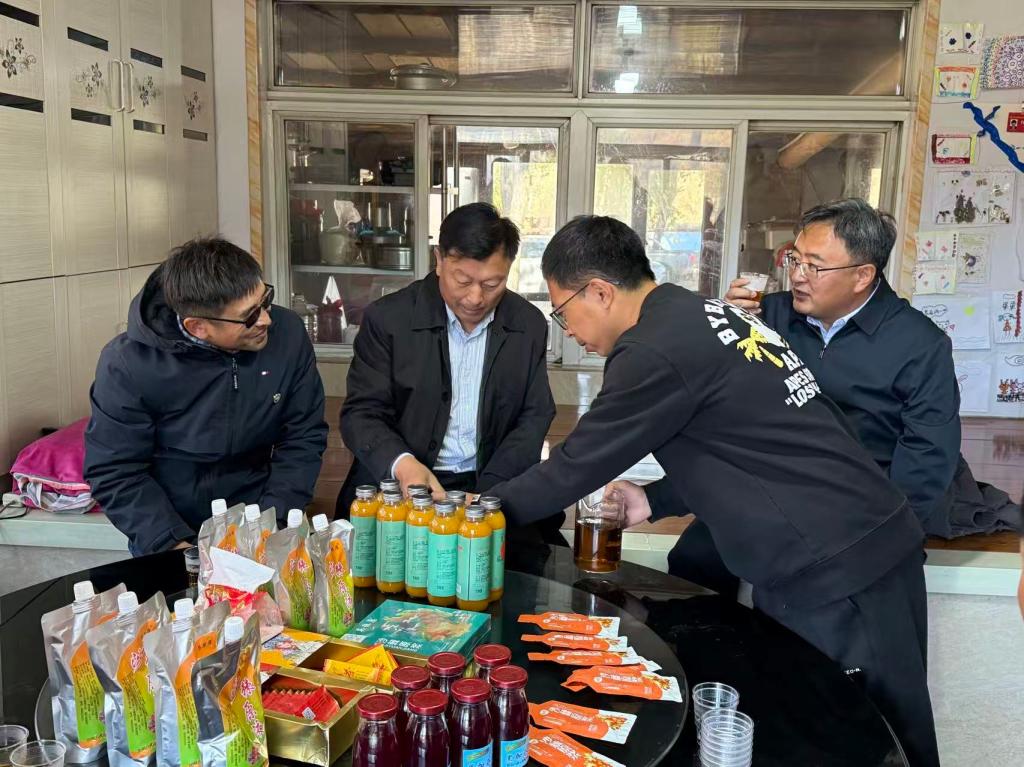李炳学教授的汇报,实地考察了沙棘种植示范区,并与科技小院师生进行深入交流,对科技小院在技术成果推广、产教融合育人等方面的成效给予肯定。他强调,要持续强化科技小院“政产学研用”五位一体的协同机制,推动科技创新成果与地方产业需求精准对接,切实提升企业的核心竞争力和市场影响力。勉励团队师生继续扎根乡村一线,以扎实的科研创新支撑沙棘产业实现持续健康发展。