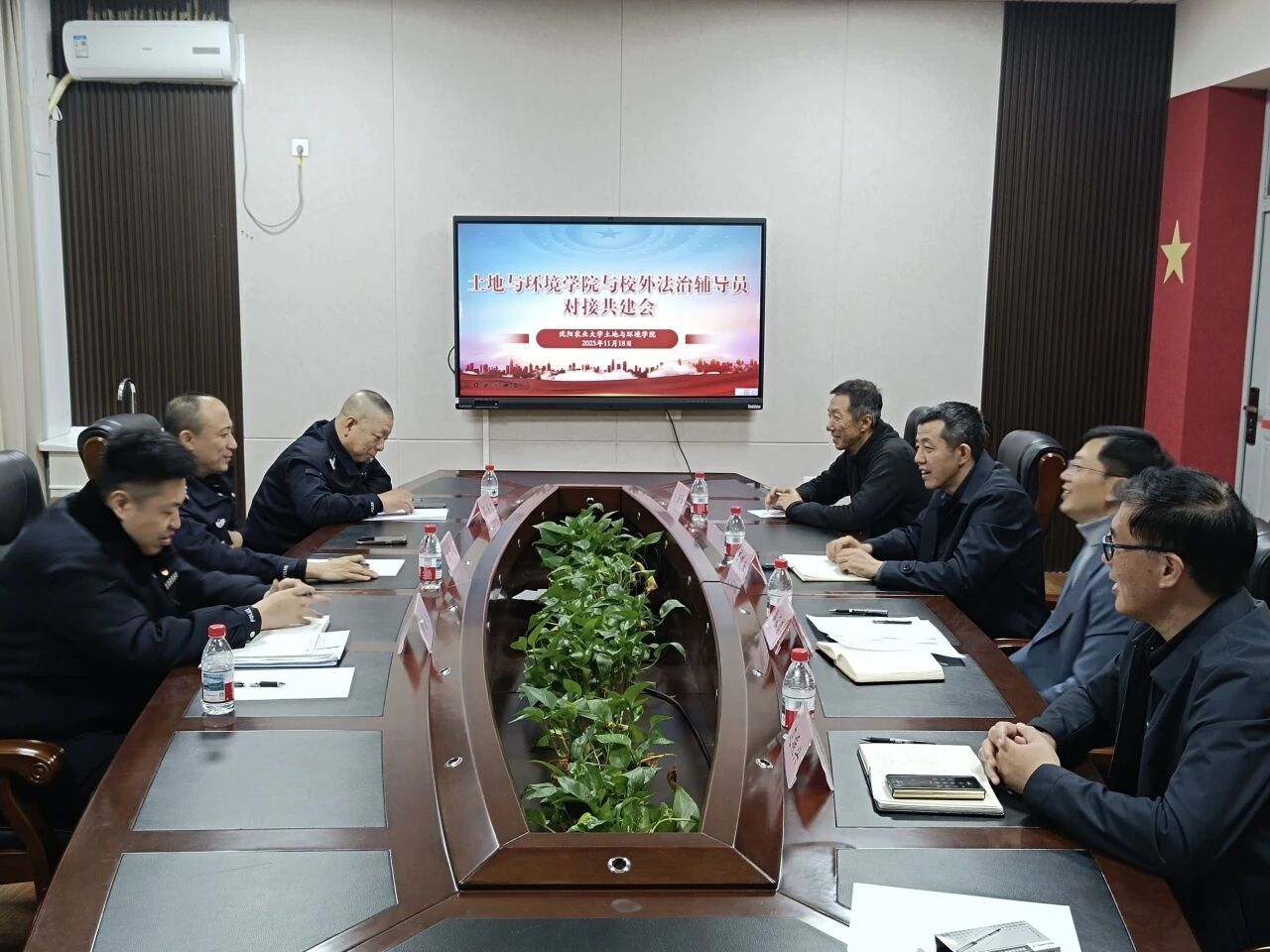 11月18日上午,土环学院召开“校外法治辅导员”对接共建会。东陵派出所所长李华武、副所长董金龙、警官吴兴才,学院党委书记李晓安,副院长边振兴、杨劲峰及全体辅导员参会。党委副书记孙长清主持会议。